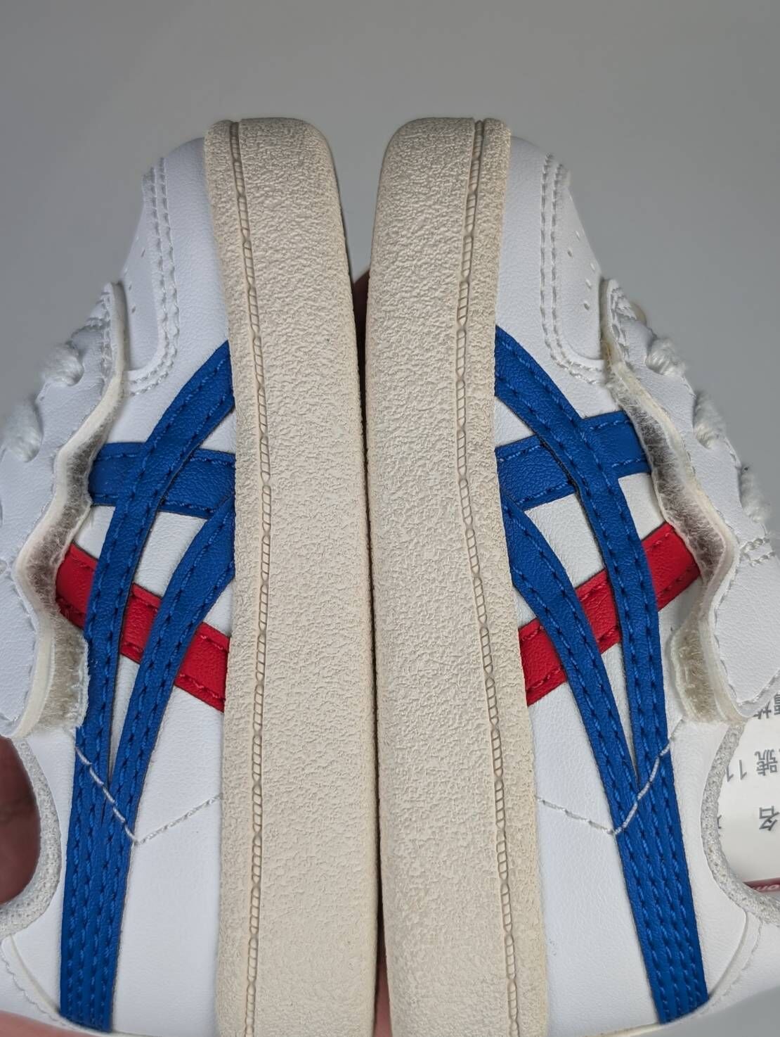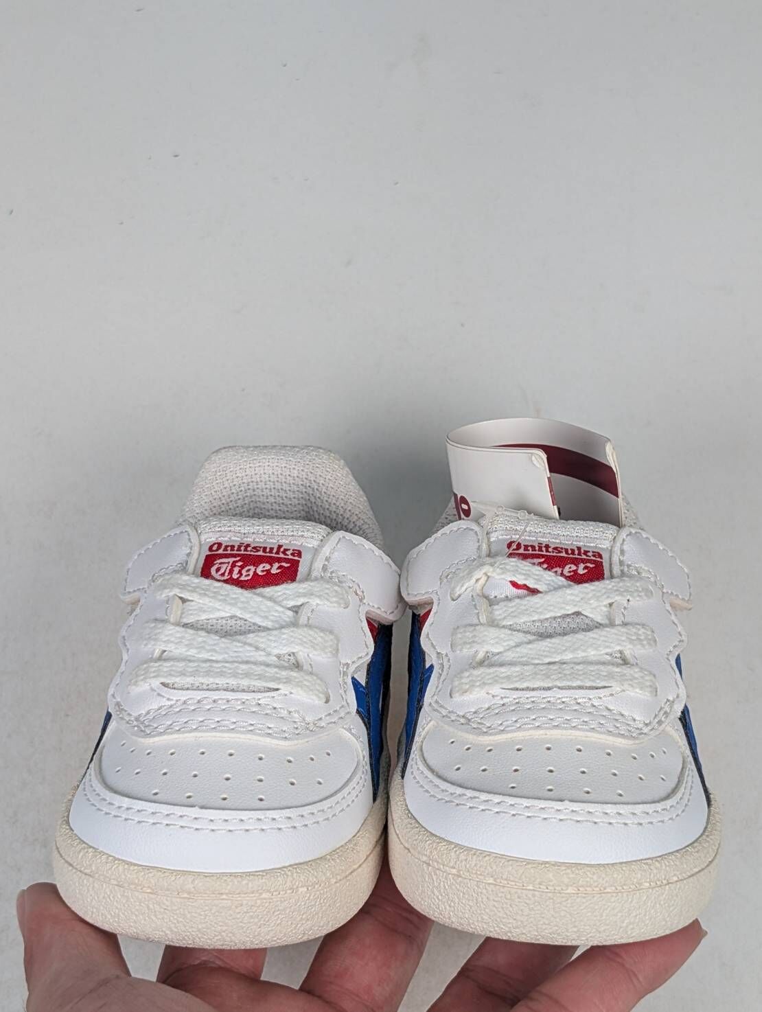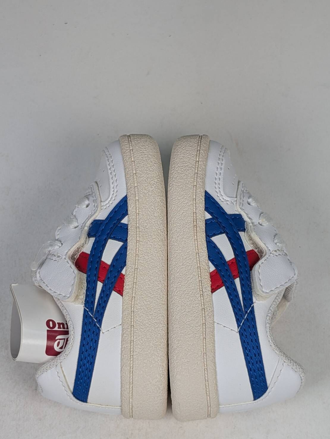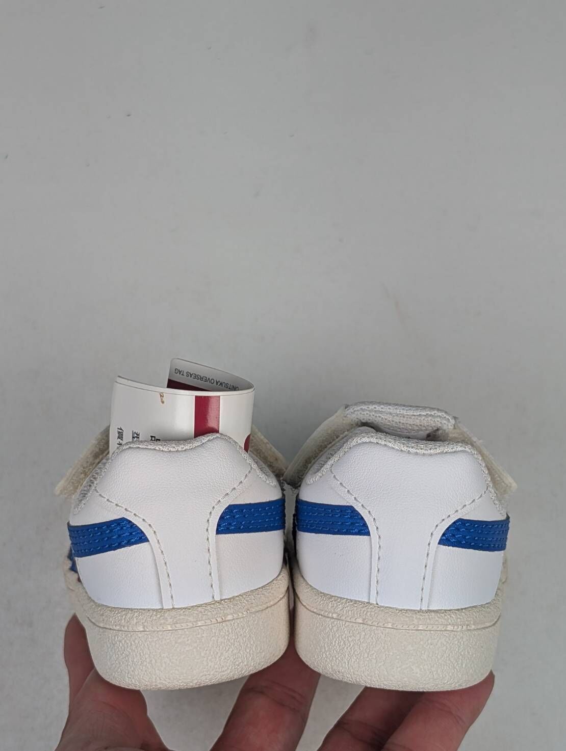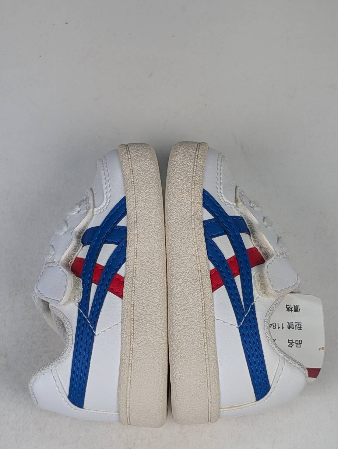 微瑕疵-左右腳鞋底泛黃 1184A075-101/C12 ASICS 亞瑟士Onitsuka Tiger 雙側魔鬼氈小童鞋藍白