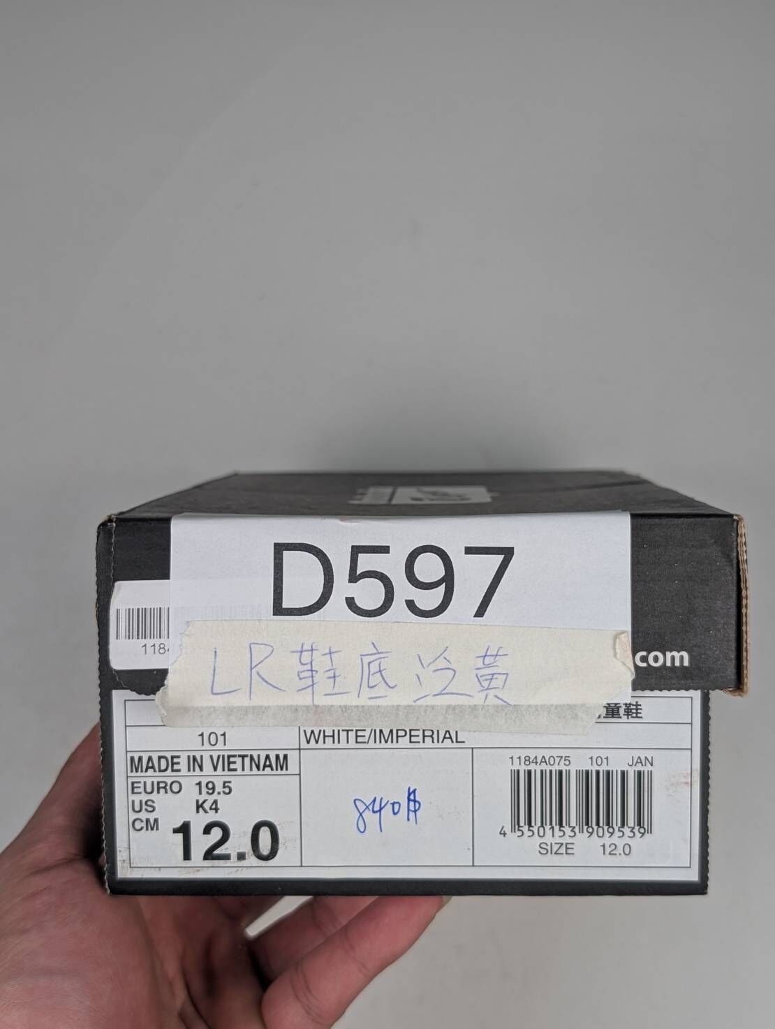 左右腳鞋底泛黃 1184A075-101/C12