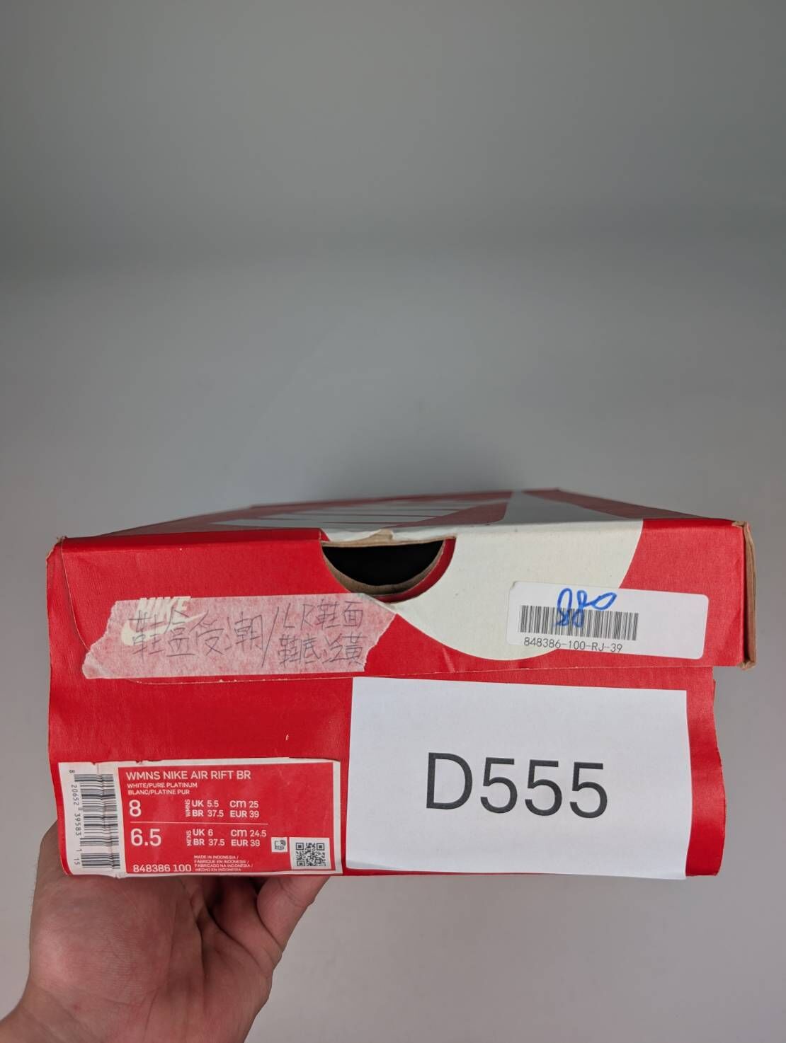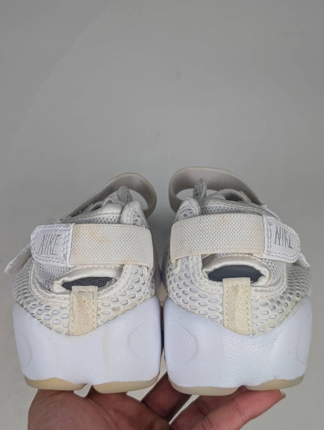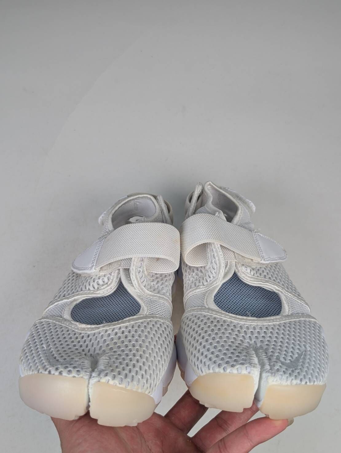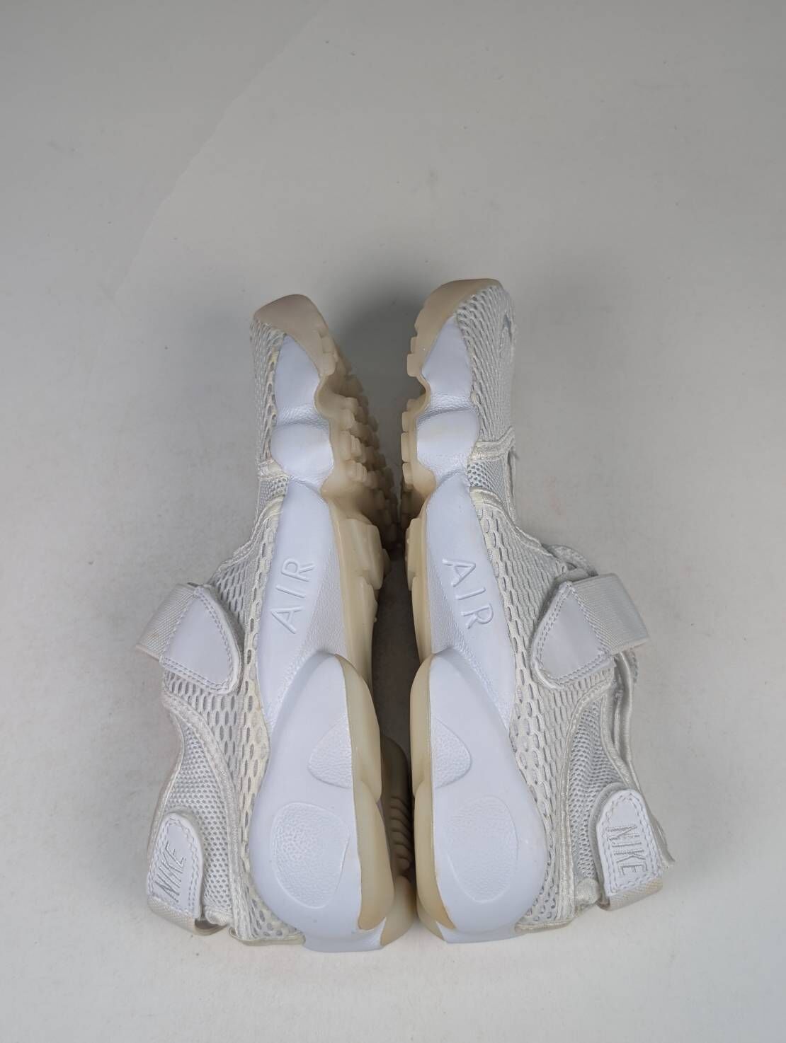 微瑕疵-鞋盒受潮&雙腳鞋面、鞋底泛黃 848386-100/8 W NIKE AIR RIFT BR 忍者鞋 白色